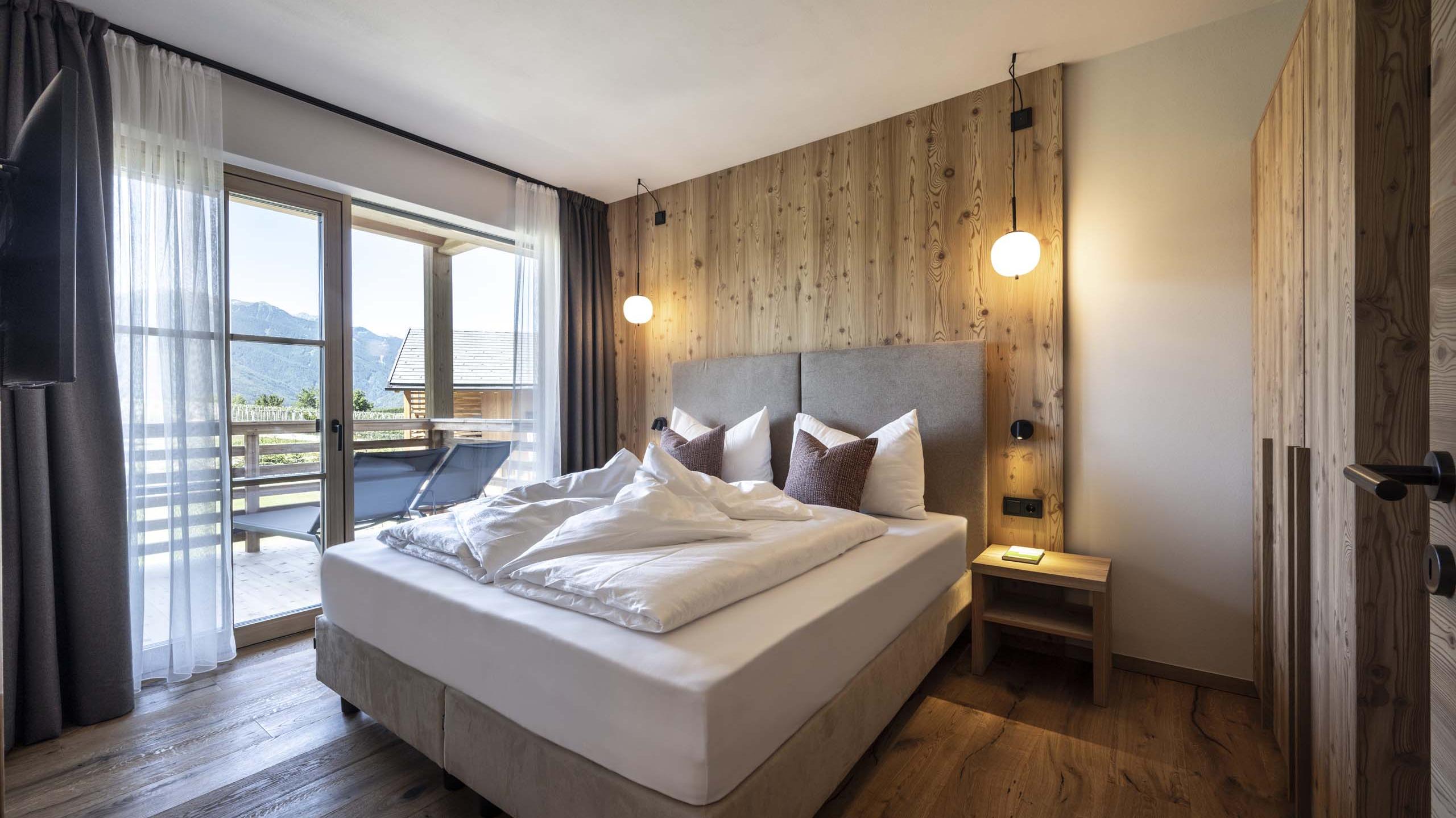 Die Apartments Premium Terrasse befinden sich im ersten Stock und sind der ideale Ort für einen Familienurlaub. Sie verfügen über einen Wohnbereich mit ausziehbarer Doppelschlafcouch, eine Küche, zwei Schlafzimmer mit gemütlichem Doppelbetten, ein Badezimmer mit separatem WC und eine 15 m² große Terrasse.